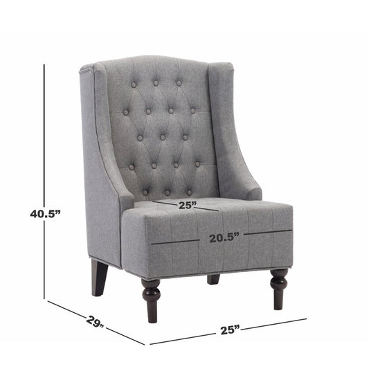 25" Gray and Black Upholstered Tufted Wingback Chair