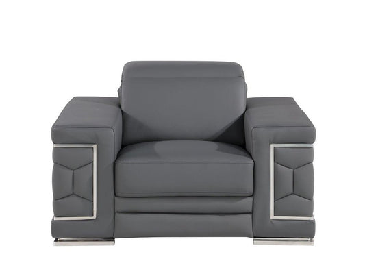 47" Granite Gray And Silver Genuine Leather Club Chair