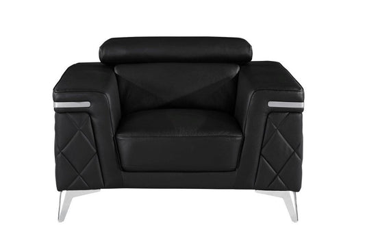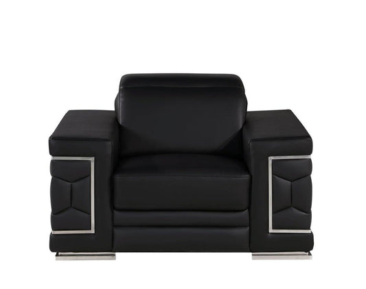 47" Black And Silver Genuine Leather Club Chair