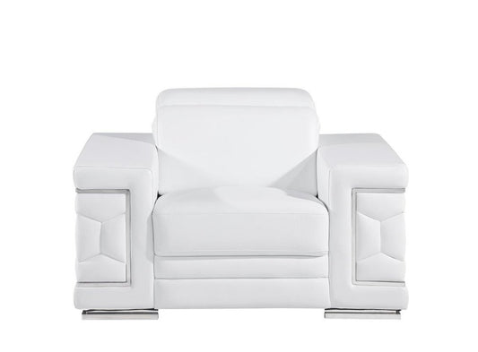47" White And Silver Genuine Leather Club Chair