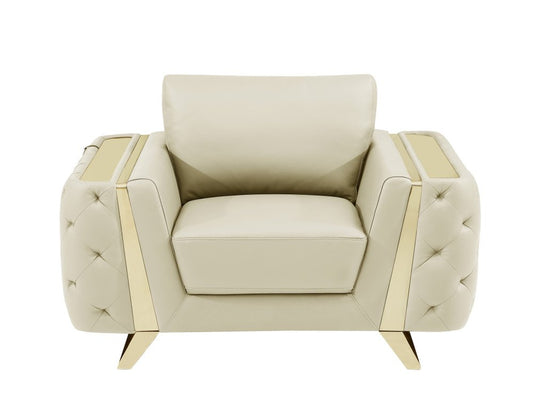 50" Beige And Gold Genuine Leather Tufted Club Chair