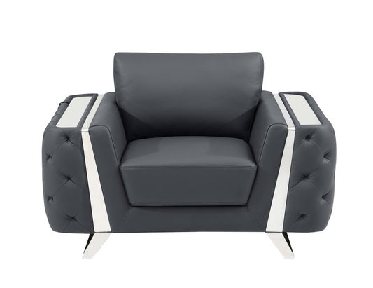 50" Dark Gray And Silver Faux Leather Tufted Club Chair