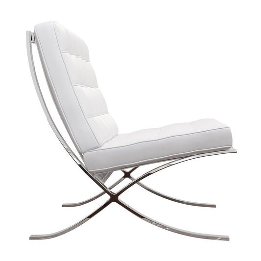 32" White and Silver Italian Leather Tufted Lounge Chair