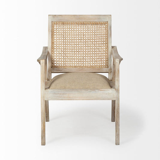 30" Off White And Gold Upholstered Swivel Arm Chair