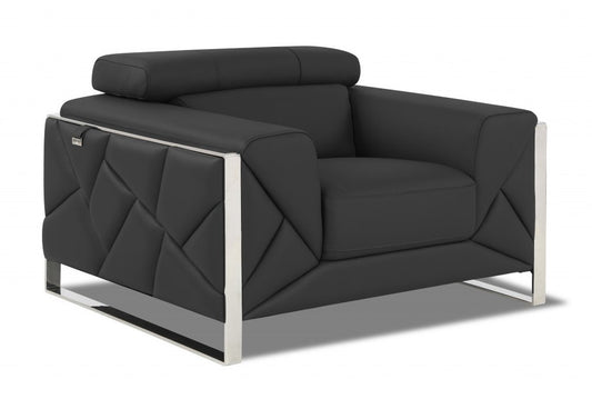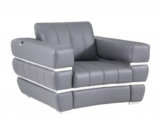 48" Dark Slate Gray And White Italian Leather Arm Chair