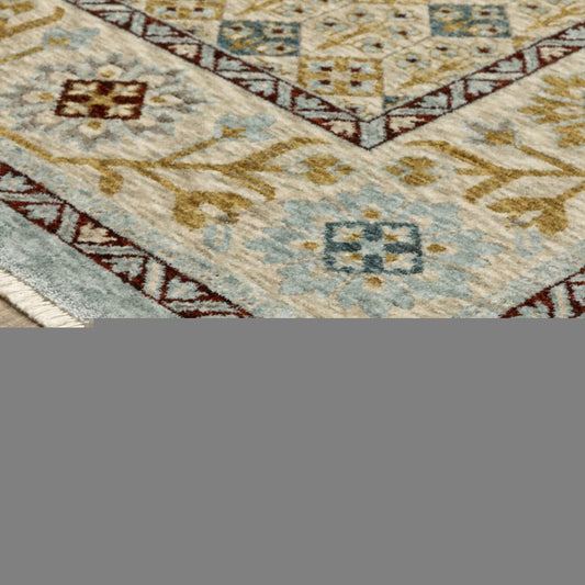 8' Beige Rust And Blue Medallion Runner Rug With Fringe