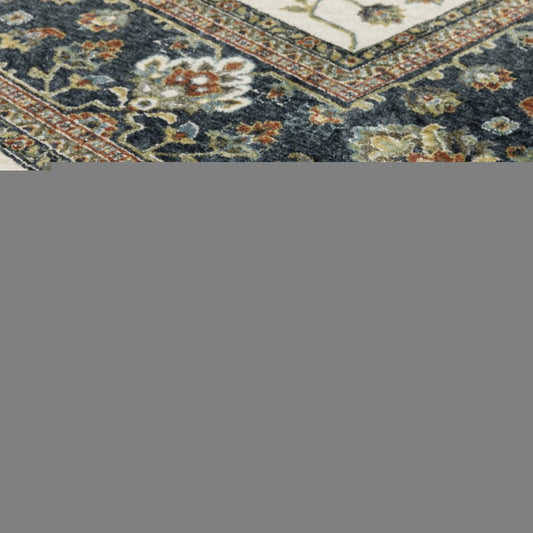 8' X 10' Charcoal And Blue Oriental Area Rug