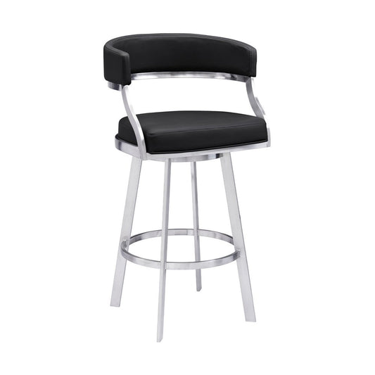 26" Black And Silver Faux Leather And Iron Swivel Low Back Counter Height Bar Chair