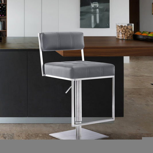 Gray and Silver Faux Leather and Iron Low Back Adjustable Height Swivel Bar Chair