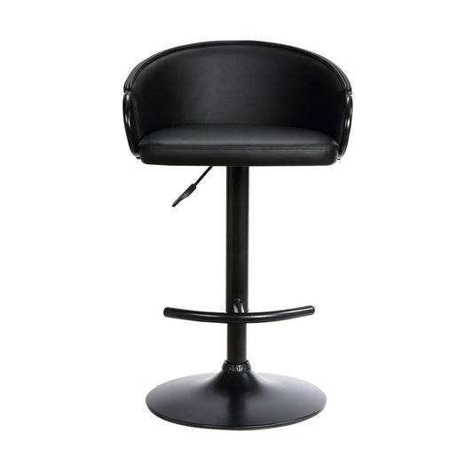 Black Faux Leather and Iron Low Back Adjustable Height Swivel Bar Chair