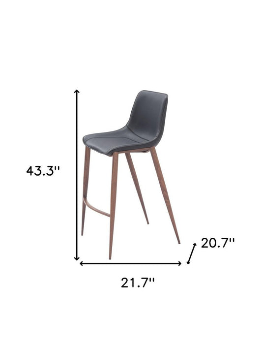 Set of Two 26" Black And Brown Faux Leather And Steel Counter Height Bar Chairs