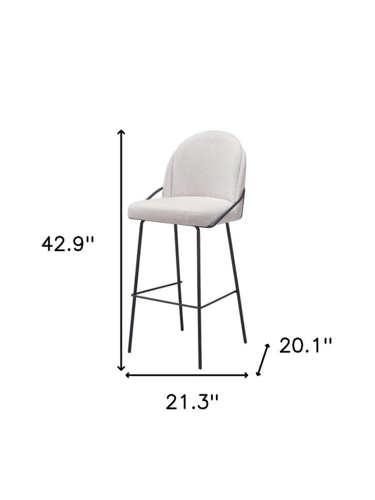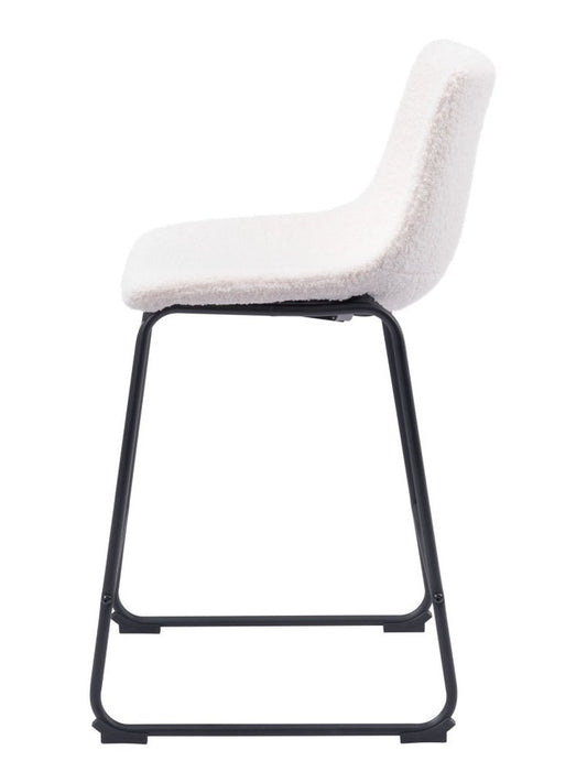 30" Ivory And Black Shearling And Steel Bar Height Bar Chair