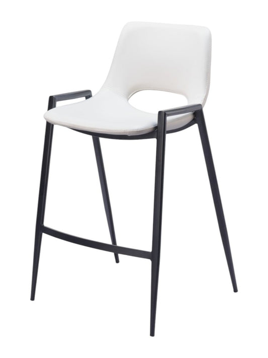 Set of Two 26" White and Black Faux Leather and Steel Low Back Counter Height Bar Chairs