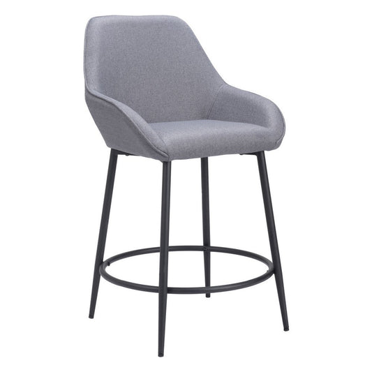 Set of Two 25" Gray And Black Fabric And Steel Counter Height Bar Chairs