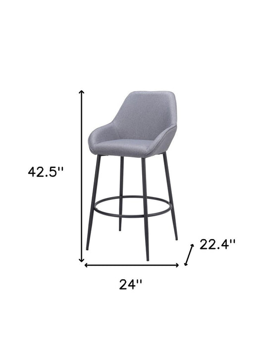 Set of Two 26" Gray And Black Fabric And Steel Counter Height Bar Chairs