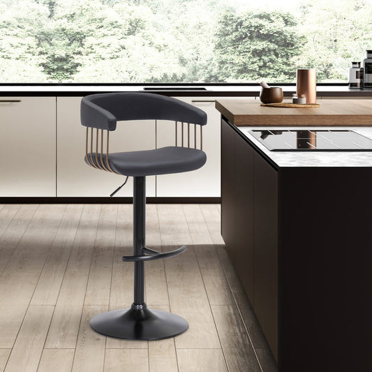 Black Faux Leather And Metal Swivel Adjustable Height Bar Chair