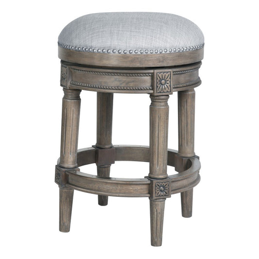 26" Gray Solid Wood Swivel Backless Counter Height Bar Chair