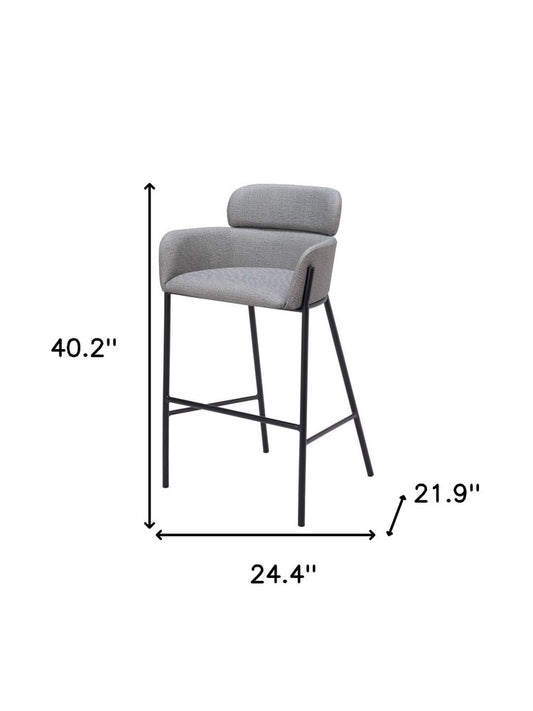 30" Slate Gray And Black Fabric And Steel Bar Height Bar Chair