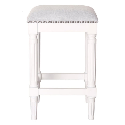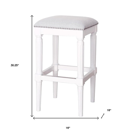 31" Light Gray and White Solid Wood Backless Bar Height Bar Chair