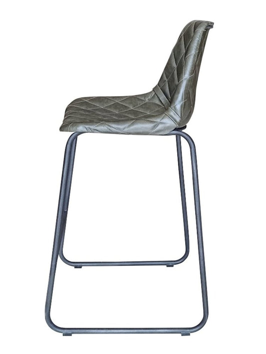 27" Green and Black Leather and Iron Counter Height Bar Chair