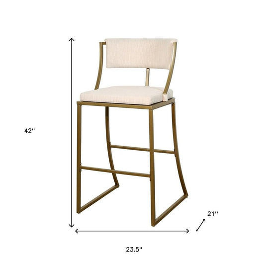 25" Beige And Antiqued Brass Steel Low Back Counter Height Bar Chair