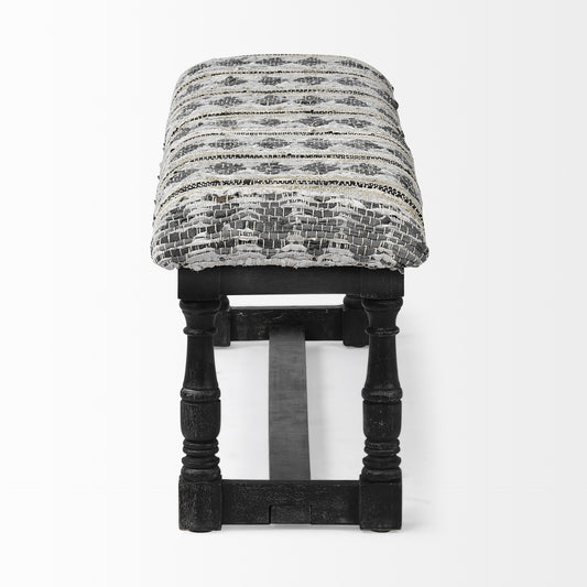 17" Cream and Black Upholstered Cotton Blend Geometric Bench
