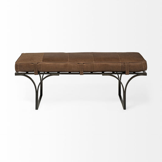 16" Black And Antiqued Brass Upholstered Genuine Leather Bench
