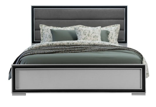 Black and Gray Wood And Velvet Lighted King Bed Frame