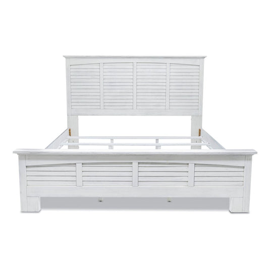 White Plantation Shutter Distressed Solid Wood King Bed Frame