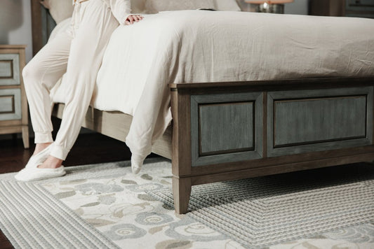 Gray Inlaid Panels Wood Queen Bed Frame