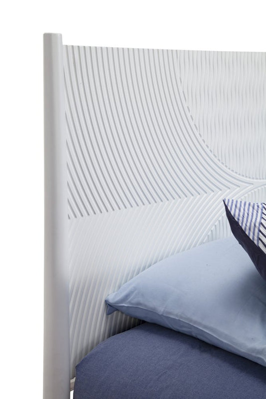 White Carved Geometric Solid Wood Queen Bed Frame