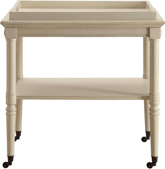28" Silver Metal And Glass Rolling Trolley Bar Cart