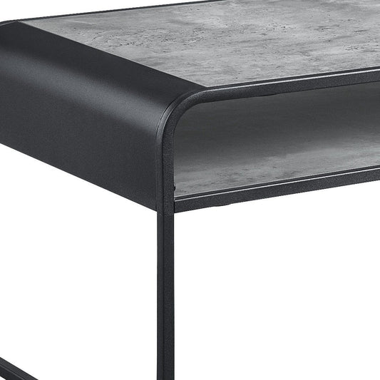 42" Gray and Black Concrete And Metal Sled Coffee Table With Shelf
