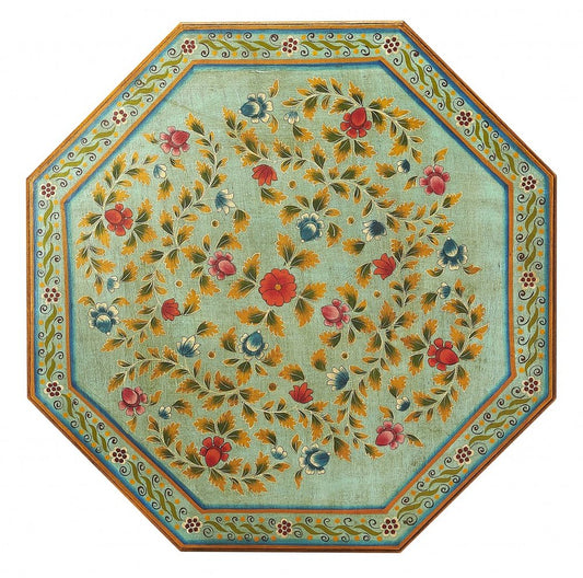 29" Green Wood Hexagon Abstract Floral Coffee Table