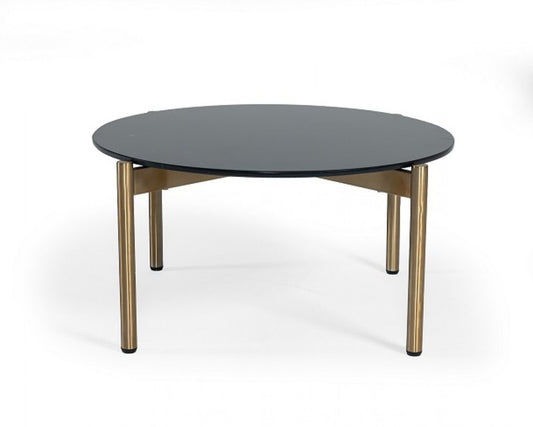 36" Black and Gold Faux Marble And Steel Round Coffee Table
