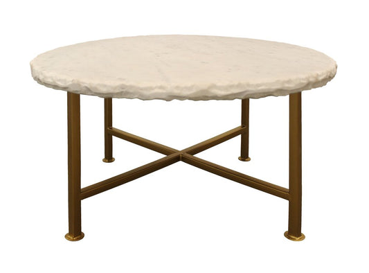 30" Ivory and Brass Genuine Marble and Iron Round Frame Coffee Table
