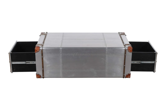 48" Silver Aluminum and Solid Wood Solid Coffee Table With Two Drawers
