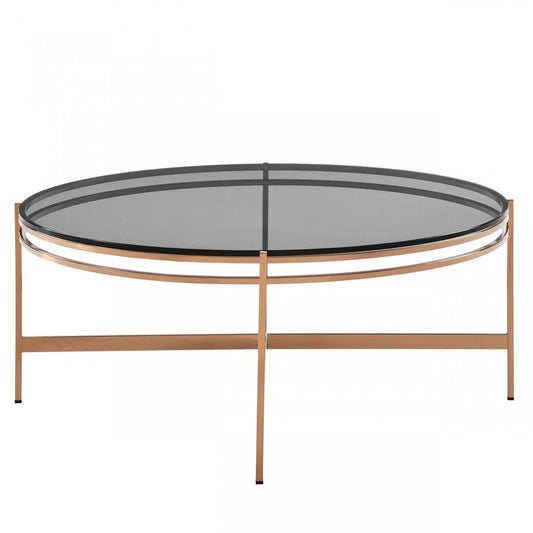 35" Gray and Gold Glass And Stainless Steel Round Coffee Table