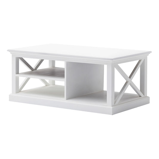 47" White Solid Wood And Solid And Manufactured Wood Coffee Table With Three Shelves