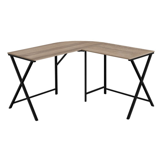 55" Taupe and Black L Shape Computer Desk