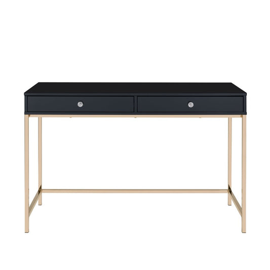 47" Black and Gold Writing Desk With Two Drawers
