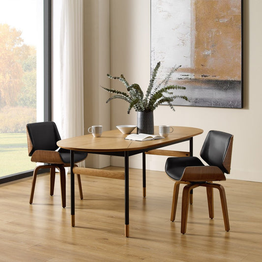 Black and Brown Upholstered Faux Leather Curved Back Dining Side Chair