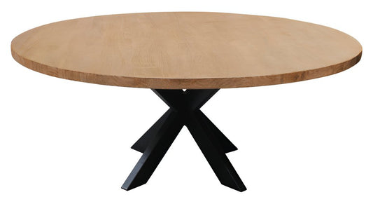 72" Natural And Black Rounded Solid Wood And Iron Pedestal Base Dining Table