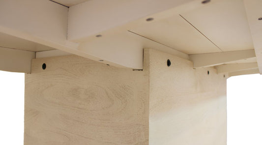 30" White And Natural Rounded Fiberglass And Solid Wood Dining Table