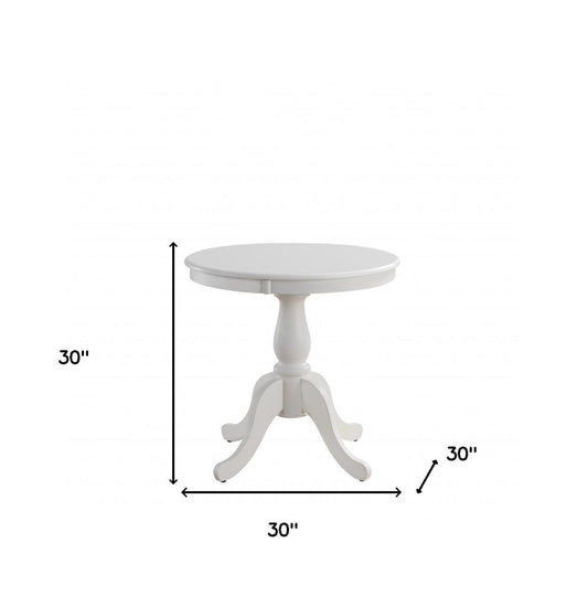 36" White Rounded Solid Manufactured Wood And Solid Wood Pedestal Base Dining Table
