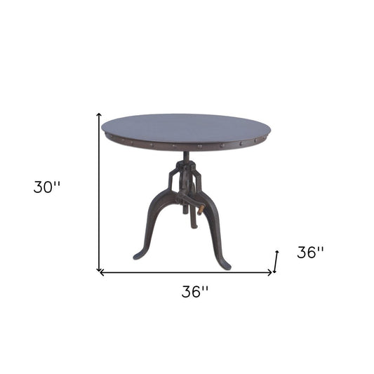 36" Industrial Gray Adjustable Crank Round Top Dining Table.