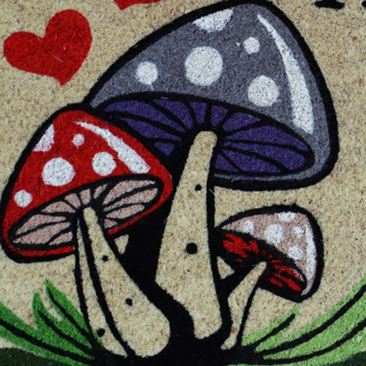 18" X 30" Beige and Black Coir Mushrooms Home Sweet Home Outdoor Door Mat