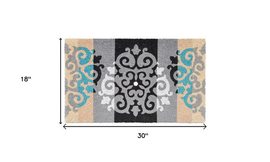 18" X 30" Beige and White Coir Damask Outdoor Door Mat