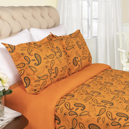 Blue and Orange Queen Cotton Blend 0 Thread Count Washable Duvet Cover Set