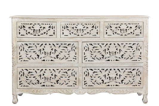 57" White Solid Wood Seven Drawer Dresser